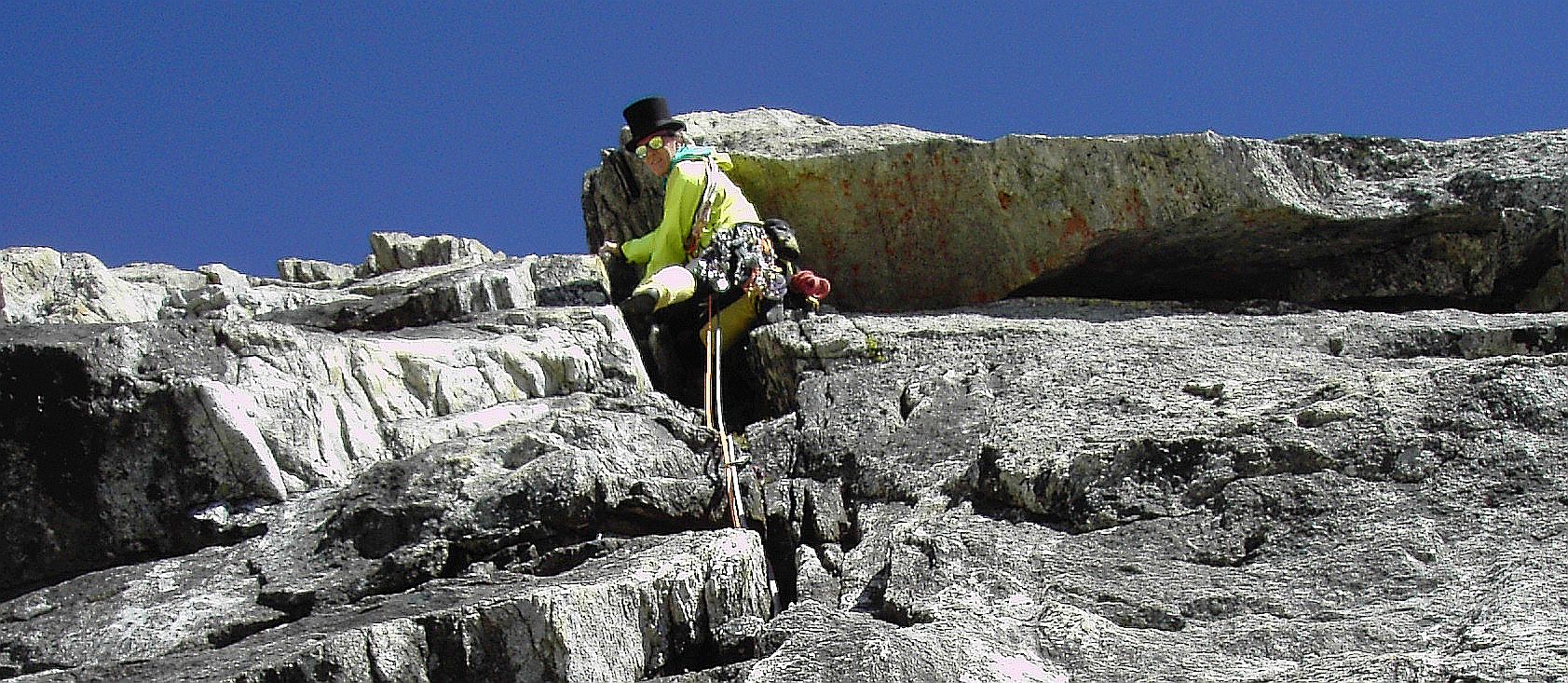 Kletterzeit der Erstbegeher: 3 Std. (+ Vorbereitung zentrale Abseilpiste)