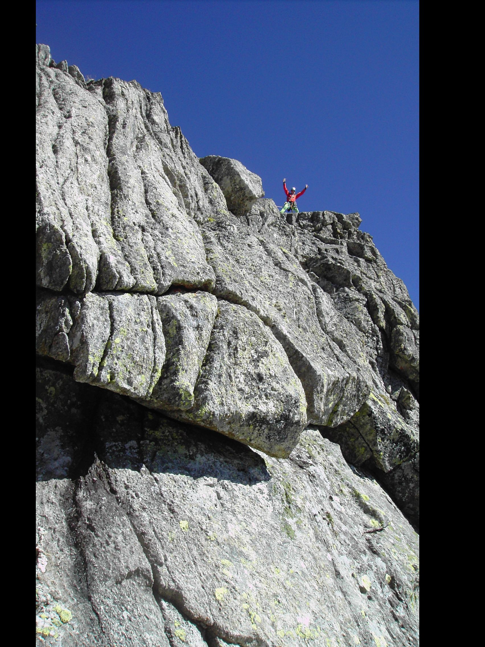 Nette, hochalpine Granitkletterei an nicht allzu steilen, flüssig kletterbaren Platten ohne vorhandener Zwischensicherung, die aber mit Friends gut selbst bewerkstelligt werden kann. Falls der Kletterhunger danach noch nicht gestillt ist, kann ja noch eine Nachbar-Route angehängt werden. Aber Achtung: inklusive Zu- und Abstieg ist der Tag auch mit einer einzelnen Hierjetztspitzen-Route in der Regel gut gefüllt!