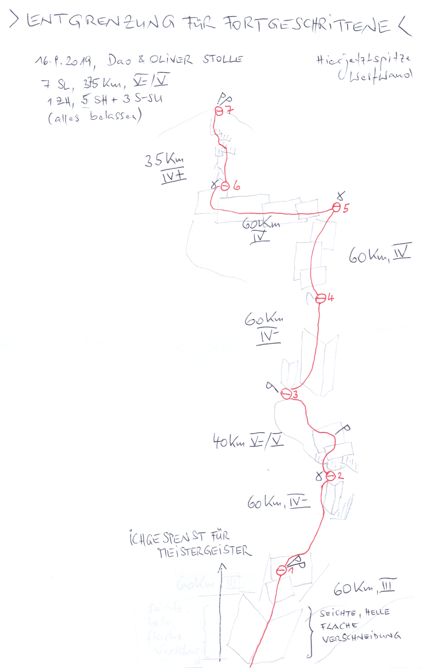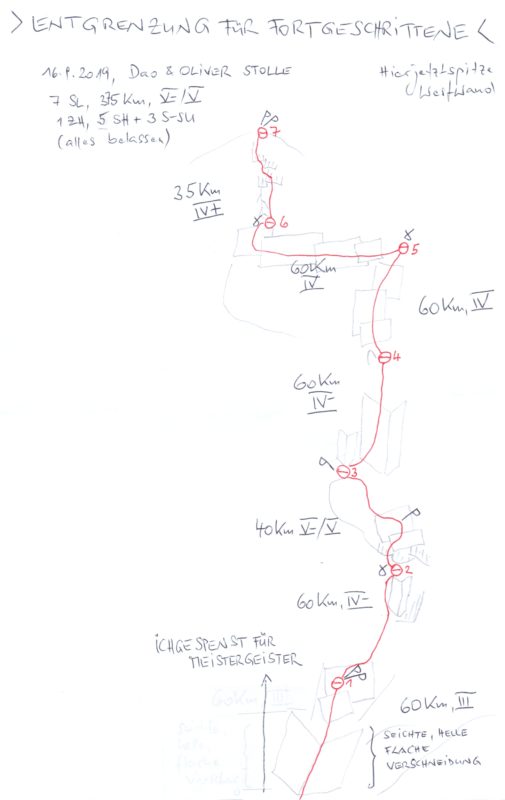 Kletterzeit der Erstbegeher: 3 Std. (+ Film-Foto-Zeit für das Kunstprojekt)