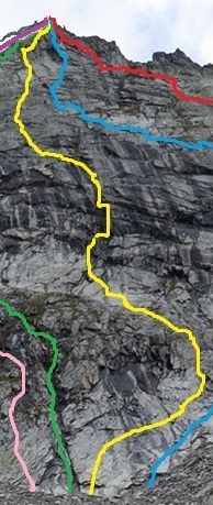 Klettermeter: 330m | Routenhöhe: 260m | Wandhöhe: 260m | Gipfelhöhe: 2.969m