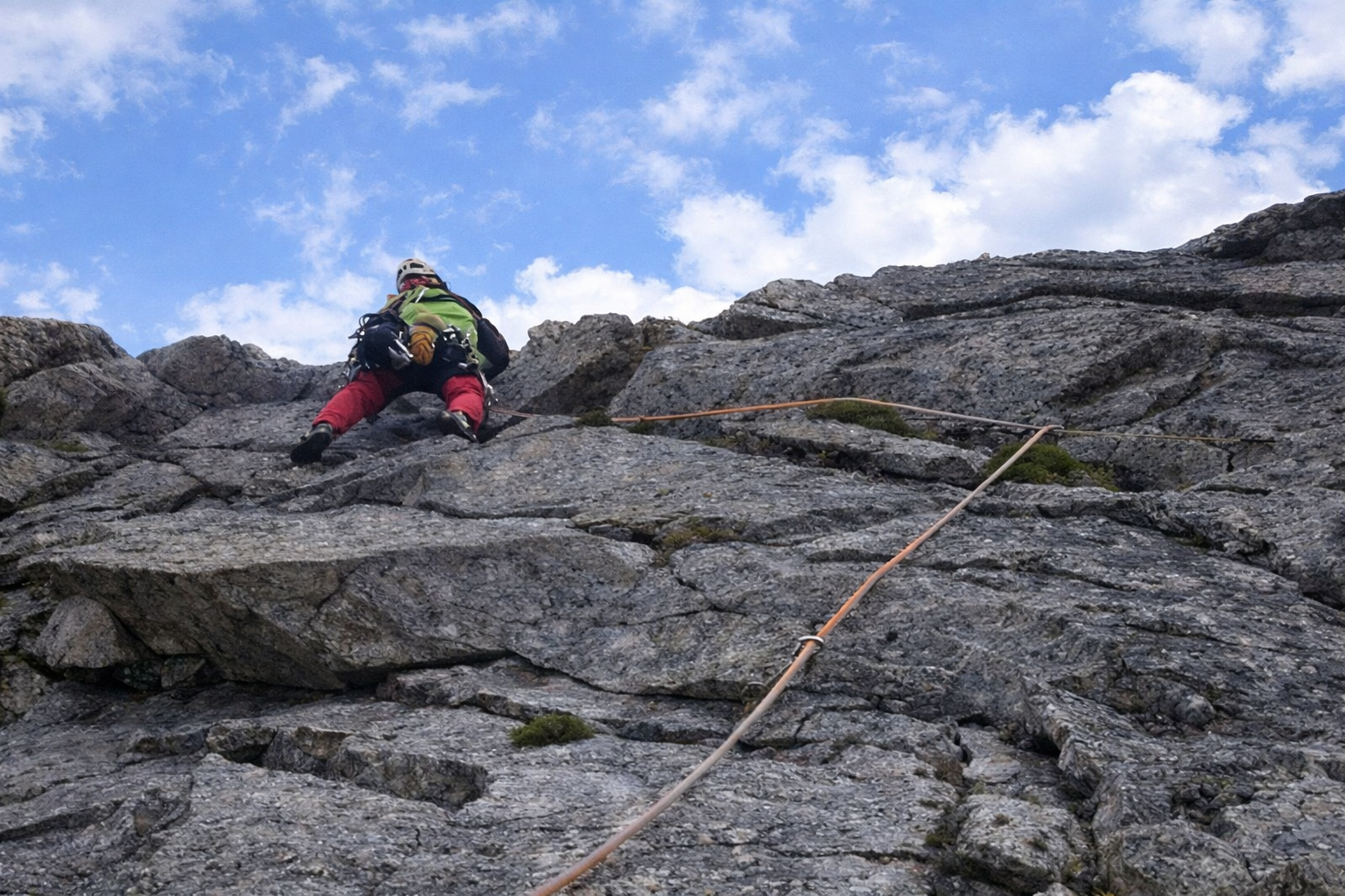 Wenn auch dort und da Vorsicht geboten ist, herrscht doch kompakter, fester, griffiger Fels vor. Die nicht allzu große Steilheit der Wand wird durch ihre Großzügigkeit ausgeglichen, sodass - vor allem in Kombination mit dem anschließenden Abklettern zur Gamsscharte - der Tag gut gefüllt sein sollte (am Nordgrat die markante Felsnadel, den berühmten "Finger", mit seinem gespenstischen "Gipfel" unbedingt mitnehmen!).