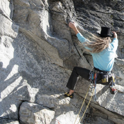 Phantastische Felsfahrt mit abwechslungsreichen Kletterstellen. Unten zwei überhängende, mit Normalhaken abgesicherte Sportkletter-Seillängen (1 SL VII-, 1 SLVIII), oben tolle Plattenkletterei[...]