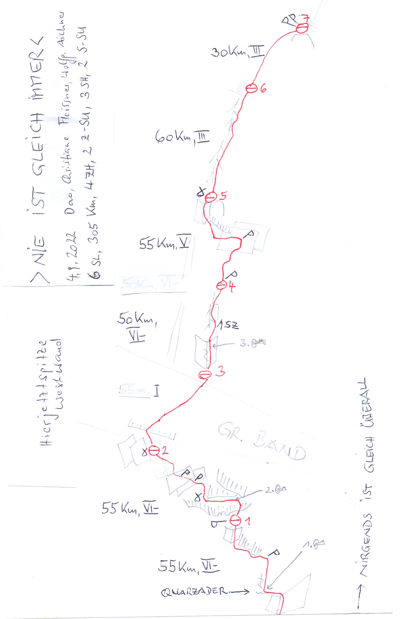 Kletterzeit der Erstbegeher: 3 Std. (samt Film-Foto-Zeit für das Kunstprojekt)