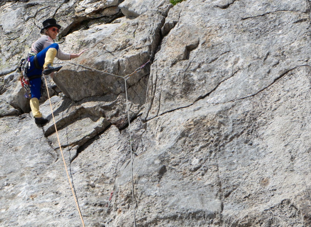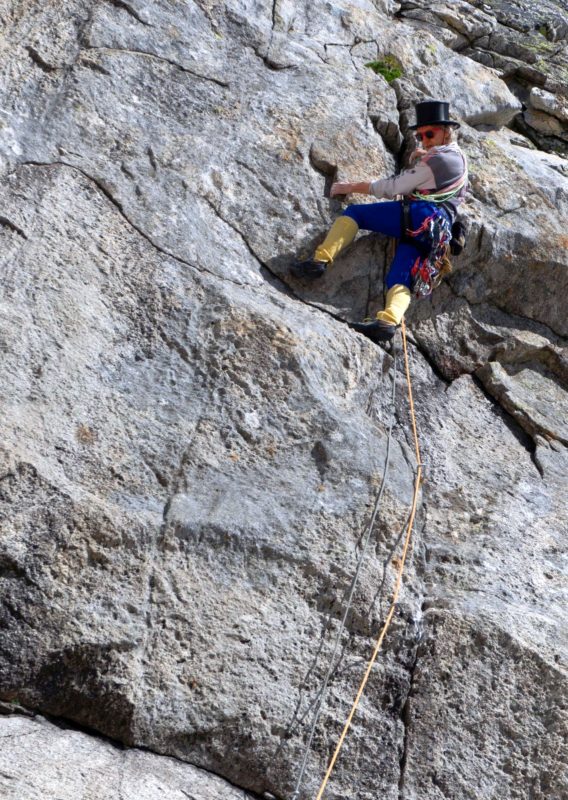 Kletterzeit der Erstbegeher: 5 Std. (samt Fotozeiten usw. f. d. Kunstprojekt)