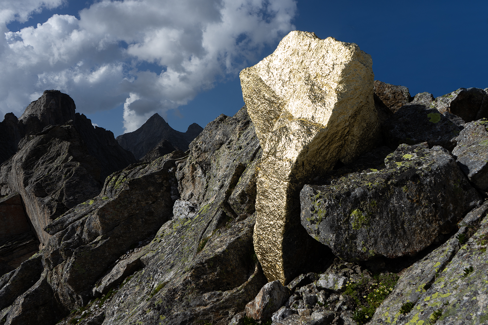 Am 4.9.2022 wurde im Zuge der Erstbegehung "Nie ist gleich immer" dem Gipfel der Hierjetztspitze ein halbschuhgroßer Stein entnommen und im Tal mit einer Goldfarbschicht überzogen. Im darauffolgenden Sommer wurde er – nunmehr vergoldet – am 19.8.2023 im Zuge der Erstbegehung "Ichfrei ist gleich Freiheit" wieder in jene Felsspalte der Hierjetztspitze eingepasst, der er im Vorjahr entnommen worden war. Ein weiteres Jahr später, am 31.7.2024, musste jedoch im Zuge der Erstbegehung „Nirgends ist gleich überall“ festgestellt werden, dass der vergoldete Stein, der im Vorjahr absturzsicher platziert wurde, verschwunden war, weshalb nunmehr ein ganzer Mutterfels-Gipfelzacken an Ort und Stelle vergoldet wurde, der wohl nicht mehr „mitgenommen“ werden kann. =|;) Diese vergoldete, mannshohe Krone leuchtet seither bei Sonnenschein von der Hierjetztspitze aus majestätisch strahlend ins Hochgebirge: THE CROWN